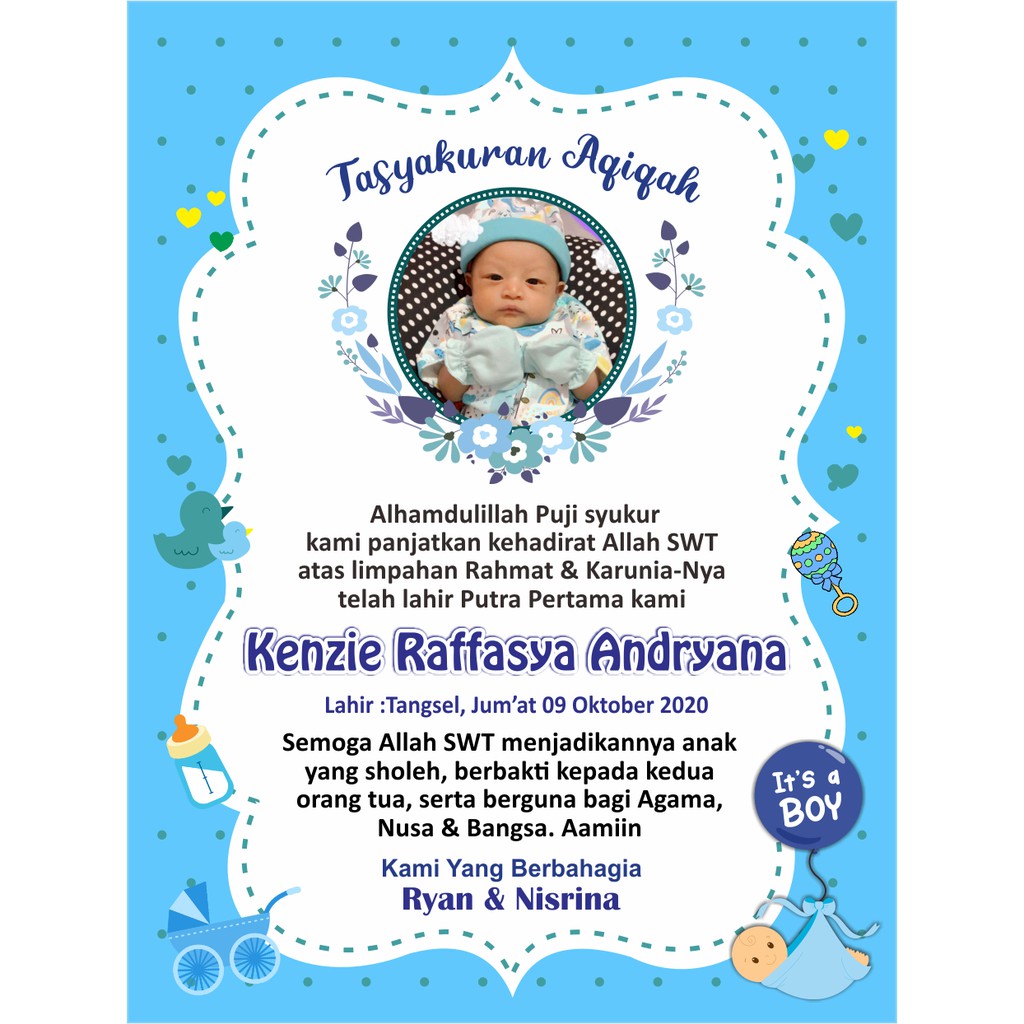 Ucapkan harapan dan doa untuk buah hati sahabat melalui 50+ layout kartu ucapan kelahiran bayi yang mudah diedit di canva. Copyright contoh kartu ucapan aqiqah bayi pada berkat (kotak nasi). Setelah sebelumnya kami membuat postingan tentang contoh kartu ucapan aqiqah bayi pada berkat kotak nasi maka pada postingan kali ini kami juga masih . Template desain kartu aqiqah anak lucu model terbaru psd kl163. Buat desain di canva sekarang!